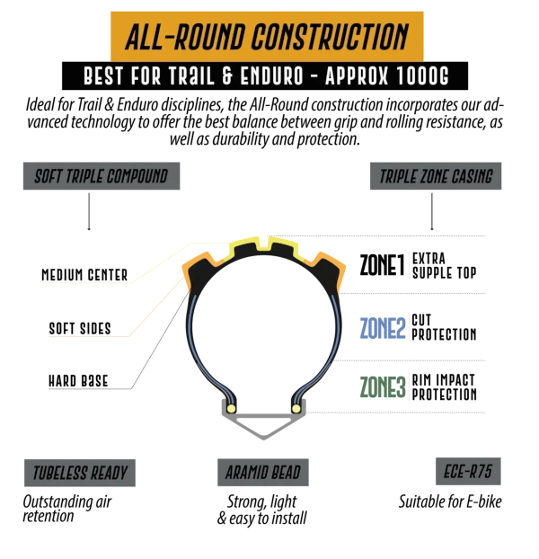 | Light dual zone casing cocok untuk XC dan trail ringan | Triple zone casing cocok untuk trail dan light enduro |