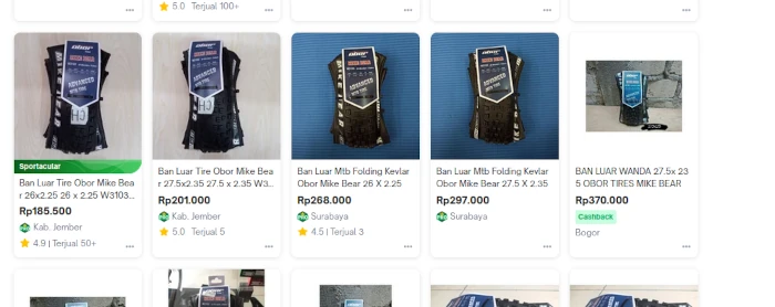 Saya dapat Delium Fast Light ukuran 27.5x2.40 di harga 160.000, sekalian beli ban dalamnya Rp. 30.000. Total 200-an dapat ban dalam kevlar dan ban luar (steal deal bgt ini).